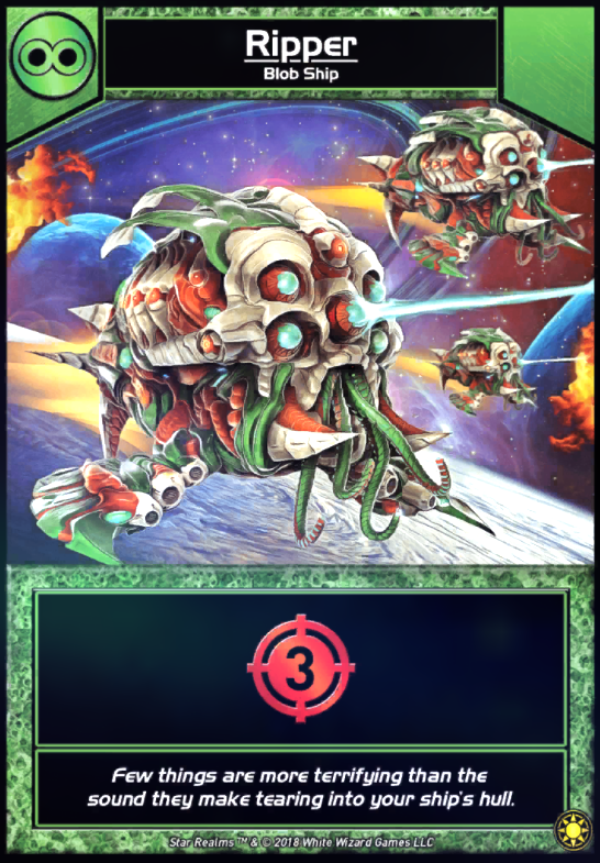 Probably not. We are only looking at two deck cycles of buys before we hope to be lethal. The most efficient damage in the game is printed on small ships. We can easily double our total damage output with 1-4 cost Blobs. We can afford 5s and 6s right out of the box. The ability to purchase 7s and 8s outright may be a personal preference, or appropriate in context. Look to increase trade in cards that also contribute to damage: Cargo Pod, Pact Pod, Blob Bot, Ram, Crusher, Cutter, Security Craft.